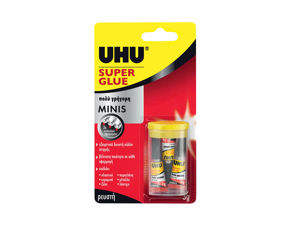 UHU Κόλλα Ρευστή Blister Super Glue Minis 1g (3Τεμ)