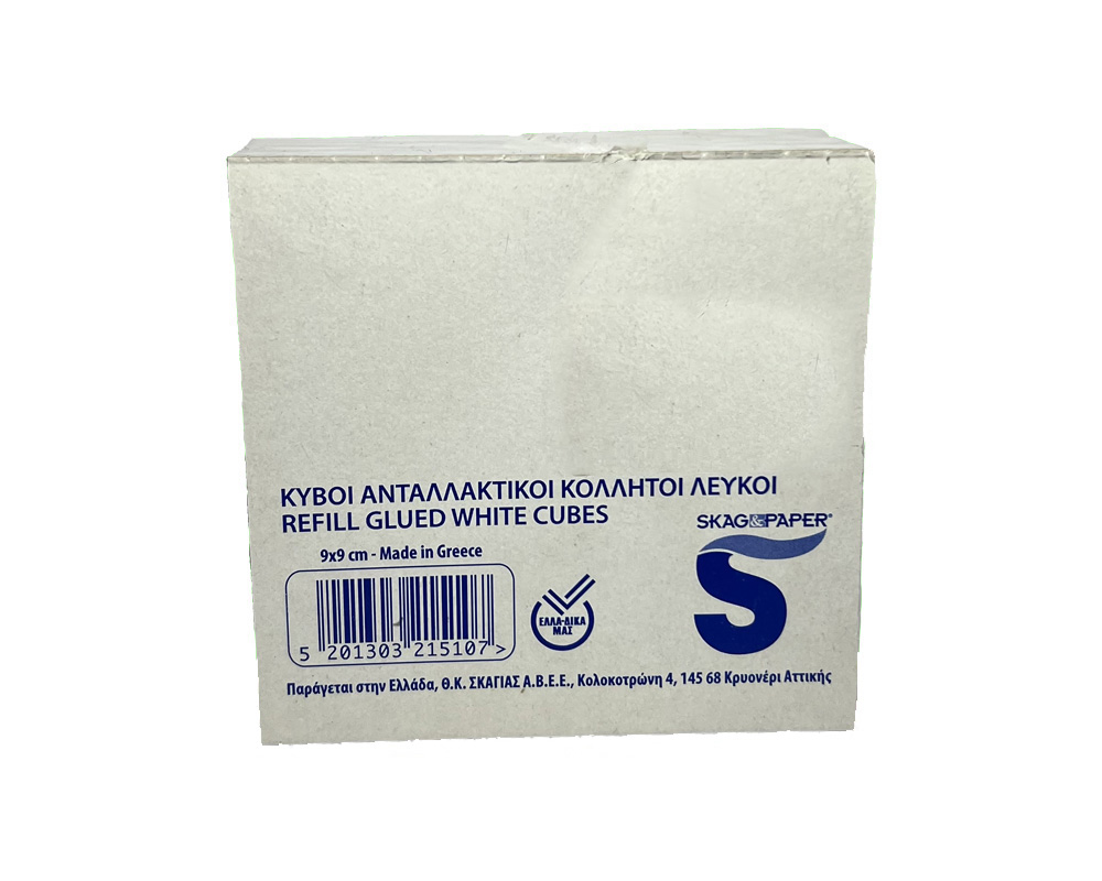 Χαρτάκια Σημειώσεων, Κύβος Κολλητός, SKAG, 9x9cm, Λευκό Χρώμα
