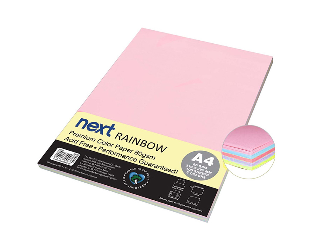 Χρωματιστά Χαρτιά,Next Rainbow, Σετ 5 Χρωμάτων, A4 (21×29.7cm), 80gr, 100 Φύλλα